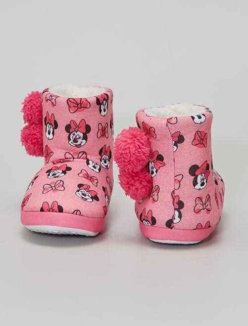 Pantufa de bota alta rosa com rostos da Minnie — conforto acolhedor e estilo divertido para o dia a dia.
