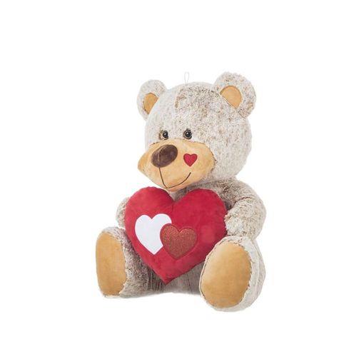 Peluche Urso Bege c/ Coração 60 cm, o seu design grande e ousado é perfeito para abraçar e aconchegar, tornando-o um presente ideal para qualquer ocasião especial.
