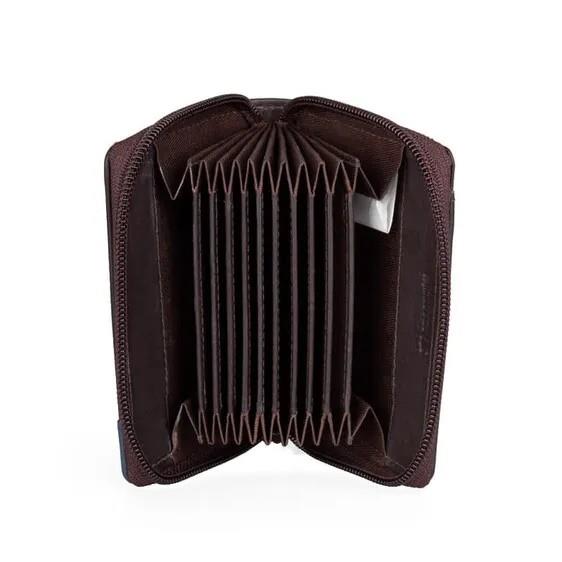 Porta Cartões e Porta Moedas C/ 2 Fechos Castanho em Pele FCP