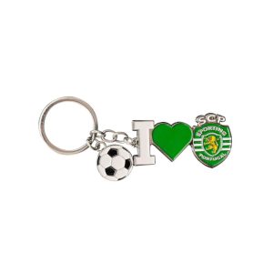 Porta-chaves com pendente de bola e emblema SCP; leve o símbolo do Sporting consigo no dia a dia.