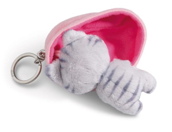 Porta-Chaves Gato Riscas Cinza em Cesto (10 cm) “Sleeping Pets” – Nici, original e super amoroso.