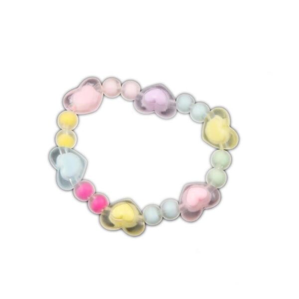 Pulseira delicada com missangas em tons suaves e corações, ideal para crianças a partir de 3 anos.