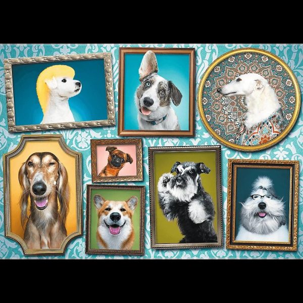 Puzzle de 1000 peças com a imagem Doggies Gallery, qualidade premium Trefl e encaixes que facilitam o assentamento.