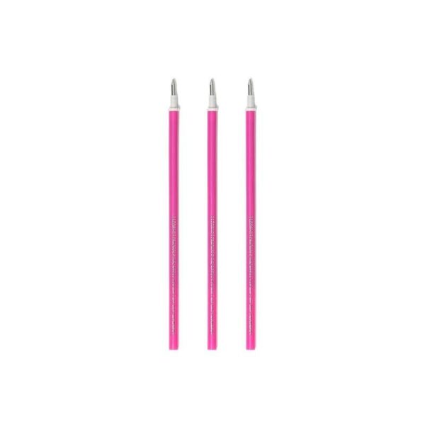 Conjunto de 3 recargas rosas para canetas de gel apagáveis, garantindo escrita suave com a possibilidade de apagar e corrigir facilmente.