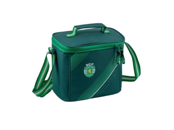 Lancheira Térmica Quadrada 22x19x14cm “Sporting Clube de Portugal” – SCP, para além de muito útil têm pegas de transportar à mão e alça para colocar ao ombro ajustável.