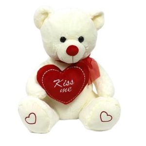 Peluche Urso Branco c/ Laço e Coração 35cm "Kiss Me"