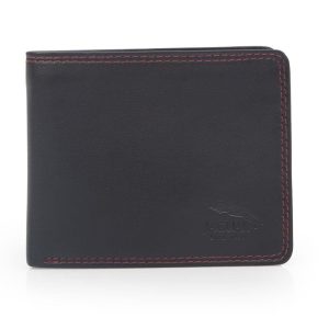 Carteira Grande c/ Porta-moedas, Aba e Costura Vermelha Pele Vaca Boston Preto - Jaguar