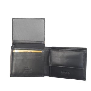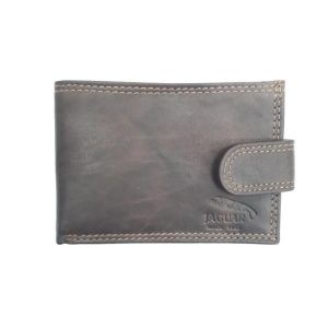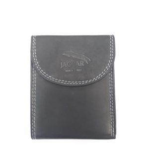 Carteira Pequena c/Porta-Moedas, Aba e Marca a Cinzento Pele Vaca Manhattan Preto - Jaguar