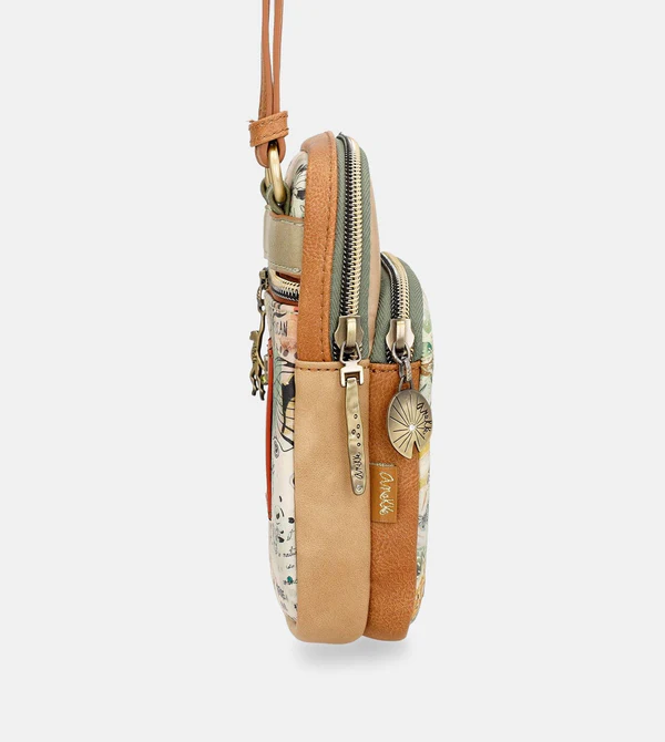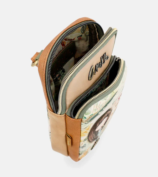 Bolsa de Traçar c/Fecho "Amazónia" - Anekke, esta bolsa de ombro tem um compartimento principal com fecho, é pequena e possui bolsos na frente e atrás. A estampa principal em tons de verde, terracota e ocre mostra Anekke vestida com um vestido que se mistura com o rio Amazonas, simbolizando a conexão com a Mãe Natureza através da água. Cercada de vegetação e animais, a estampa em estilo aquarela ganha vida, com inúmeros detalhes em bordados e toques metálicos. A alça de ombro é ajustável em diferentes comprimentos, perfeita para adaptá-la à altura que desejar. O interior é forrado com tecido original estampado com motivos da coleção e possui bolsos.