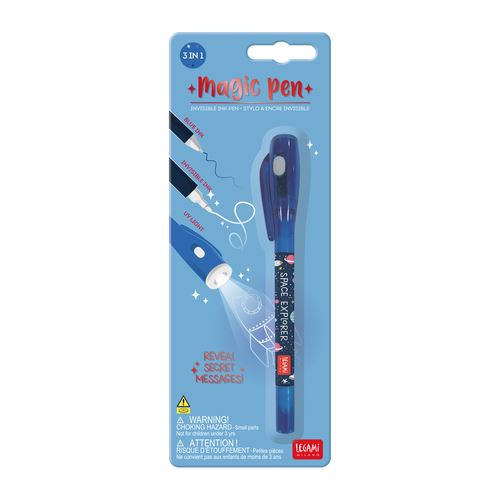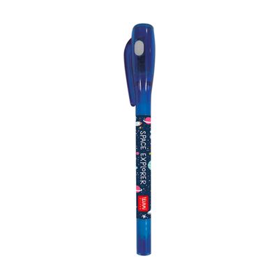 Caneta Mágica Tinta Invisível "Space" - Legami, com duas pontas (1 ponta de escrita de tinta azul e 1 ponta de escrita com tinta invisível que só é visível com a luz UV, incluída na caneta).