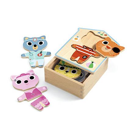 Dressup Mix - Puzzle Madeira Vestir Gatinhos - Djeco