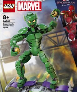 Este conjunto Lego de 471 peças permite construir o vilão Green Goblin da Marvel. Indicado para maiores de 8 anos, o modelo é detalhado e articulado, com acessórios como bombas de abóbora e um planador. Inclui um manual fácil de seguir.