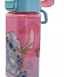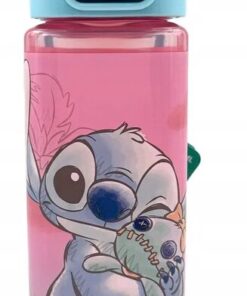 Uma garrafa quadrada em tons de rosa delicado, com a inscrição "Ohana" e um design encantador inspirado em Lilo & Stitch. Com capacidade para 500 ml, é prática e estilosa, ideal para manter-te hidratado enquanto levas a magia Disney contigo para onde fores.