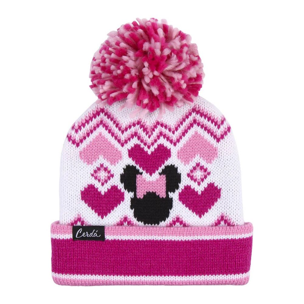 Gorro de Malha Rosa c/ Pompom Zigzag e Coração - Minnie