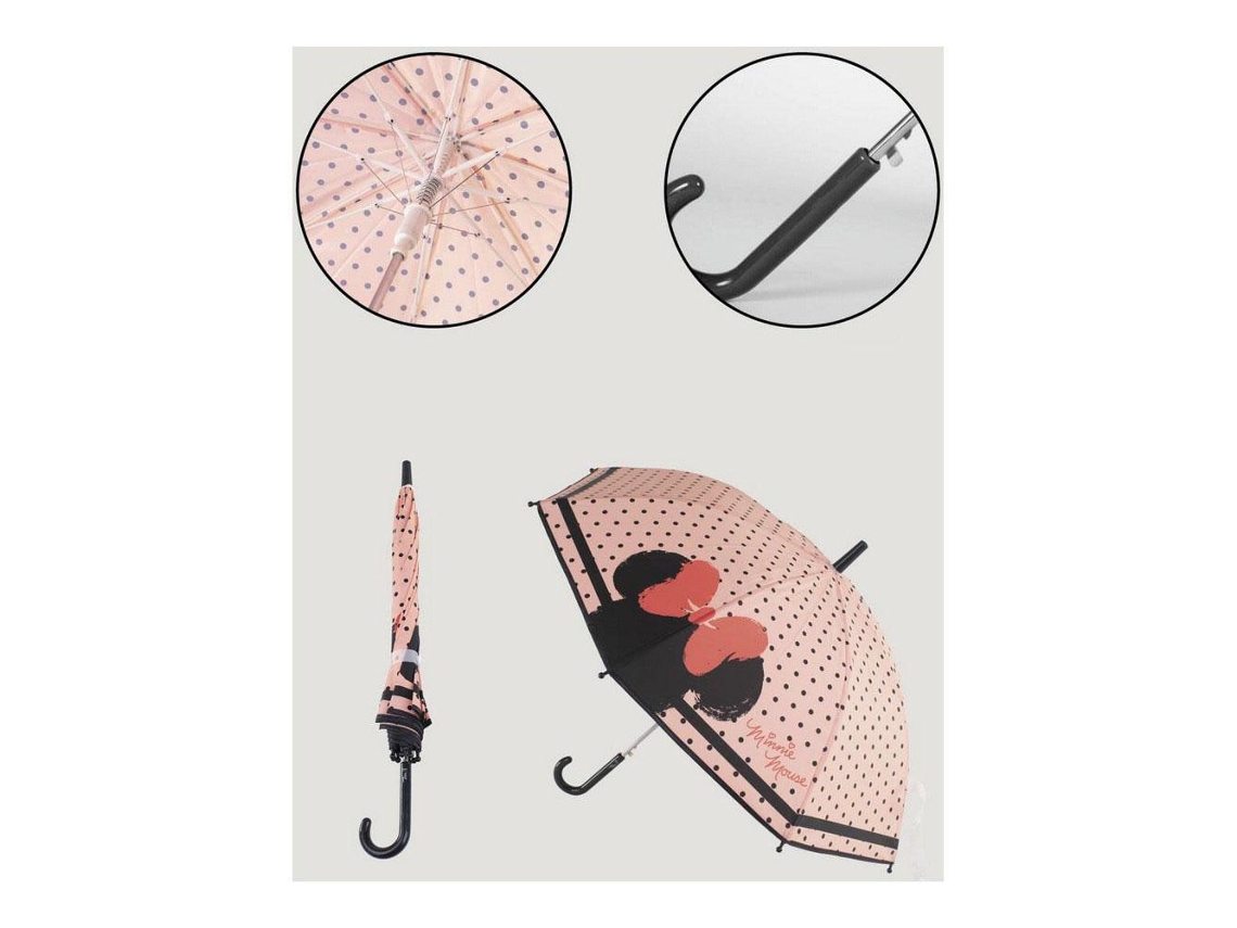 Guarda Chuva Rosa e Preto c/Minnie e Bolinhas Pretas 48cm - Minnie, é um guarda-chuva automático Minnie Mouse cor de rosa ideal para quem procura produtos de qualidade para os mais pequenos!