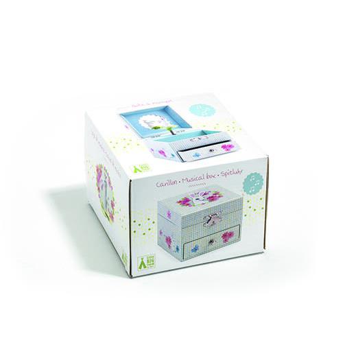 Guarda Joias Musical Djeco Coelhinho Quadrada. Gira a manivela, abre a caixa e ela ganha vida! Em madeira, veludo, plástico e metal.