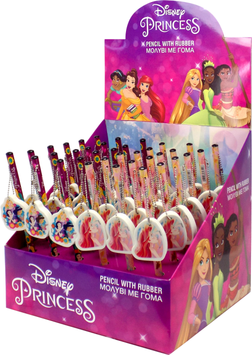 Lápis c/ Borracha Pendente, 2 Modelos – Princesas Disney