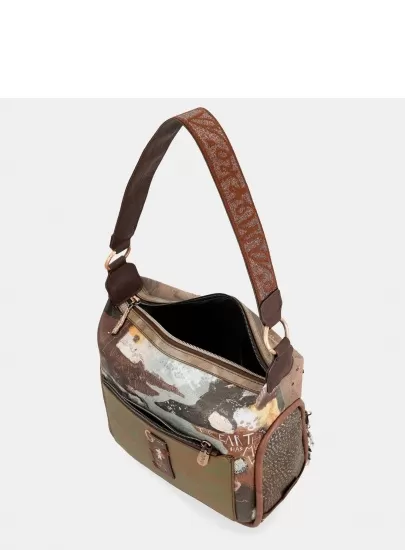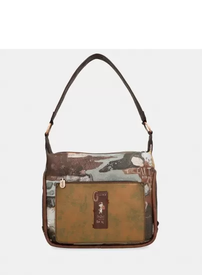 Mala de Ombro Média "Core" - Anekke - Possui duas alças para usar como maleta e uma alça de ombro removível e ajustável. A alça de ombro possui elementos decorativos que a tornam única, como elementos bordados e miçangas coloridas. O interior é forrado com tecido original estampado com motivos da coleção, e possui bolsos. Além disso, é acolchoado para proteger seus aparelhos eletrônicos e possui compartimentos para poder organizar tudo como você preferir. Na parte de trás tem dois fechos que, quando abertos, permitem adaptá-lo a um carrinho, para que o possa levar consigo quando viajar.
