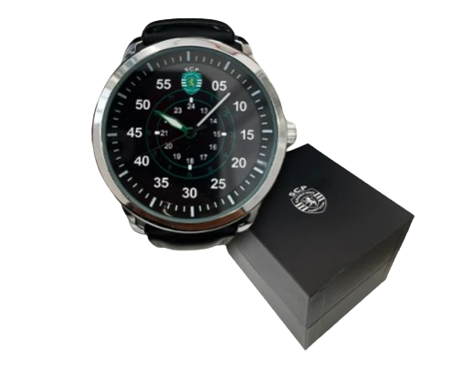 O relógio de pulso preto do SCP é um acessório elegante e funcional para os adeptos do Sporting Clube de Portugal. Com um design moderno e discreto, combina a cor preta com o emblema do clube em destaque. Ideal para uso diário, oferece precisão e estilo, permitindo aos sportinguistas demonstrar o seu orgulho leonino em qualquer ocasião.
